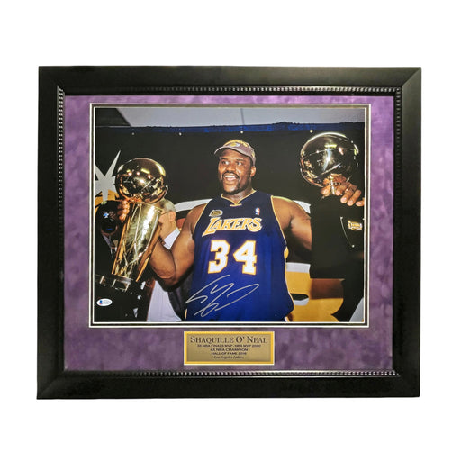 This 16x20 photo custom framed to 23x27 has been personally hand signed by Shaquille O’Neal of the Los Angeles Lakers 100% authentic Certificate of...
