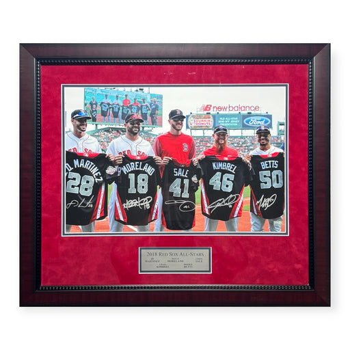 This photo custom framed to 24x27 has been personally hand signed by the 2018 Red Sox All Stars Chris Sale, Craig Kimbrel, Mookie Betts, JD Martine...