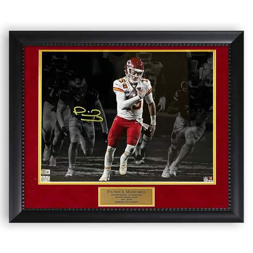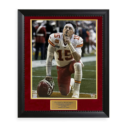 This photo of Patrick Mahomes comes professionally framed and ready to hang in any home or office. It measures 11" x 14". • Unsigned • Custom Plaque