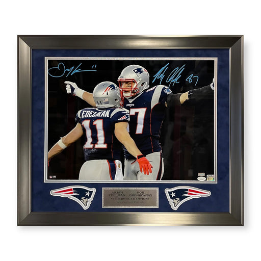 Rob Gronkowski & Julian Edelman New England Patriots Autographed 16x20 Photo Framed to 23x27 JSA