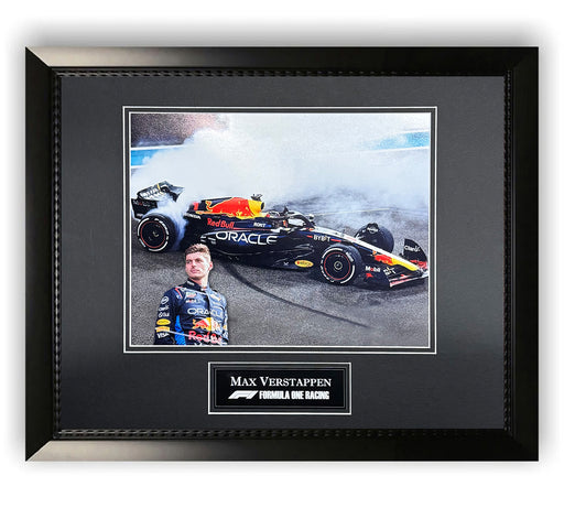 This photo of the Max Verstappen comes professionally framed and ready to hang in any home or office. It measures 11x14. • Unsigned • Custom Plaque