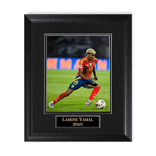 This photo of Lamine Yamal comes professionally framed and ready to hang in any home or office. It measures 11x14". • Unsigned • Custom Plaque