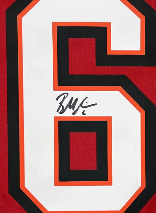 This red Nike game jersey has been personally hand-signed by Baker Mayfield of the Tampa Bay Buccaneers
