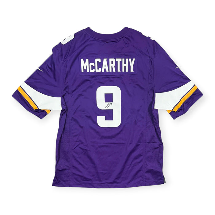 This purple Nike game jersey has been personally hand-signed by J.J. McCarthy of the Minnesota Vikings