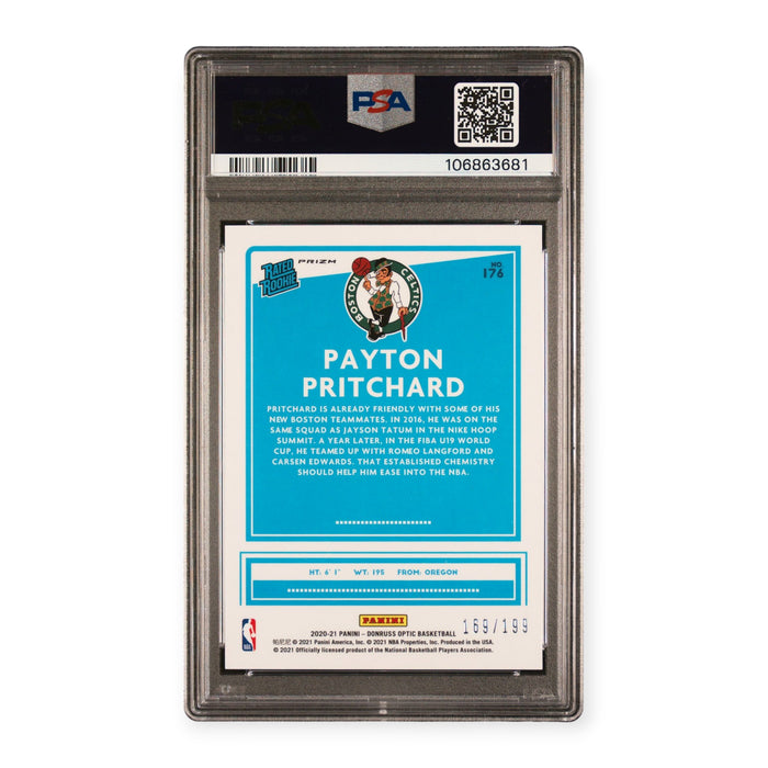 Payton Pritchard On Card Autographed 2020 Panini Donruss Optic Orange Rookie RC #169/199 PSA 9